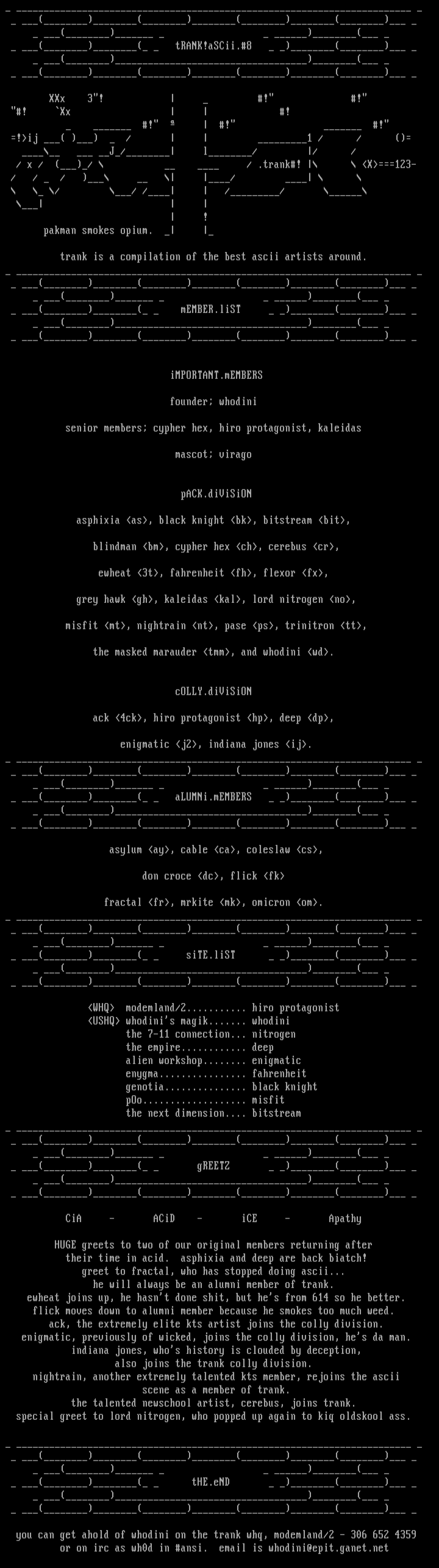 you can get ahold of whodini on the trank whq, modemland/2 - 306 652 4359