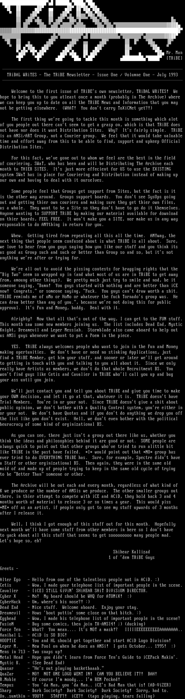 TRiBAL WRiTES - The TRiBE Newsletter - Issue One / Volumne One