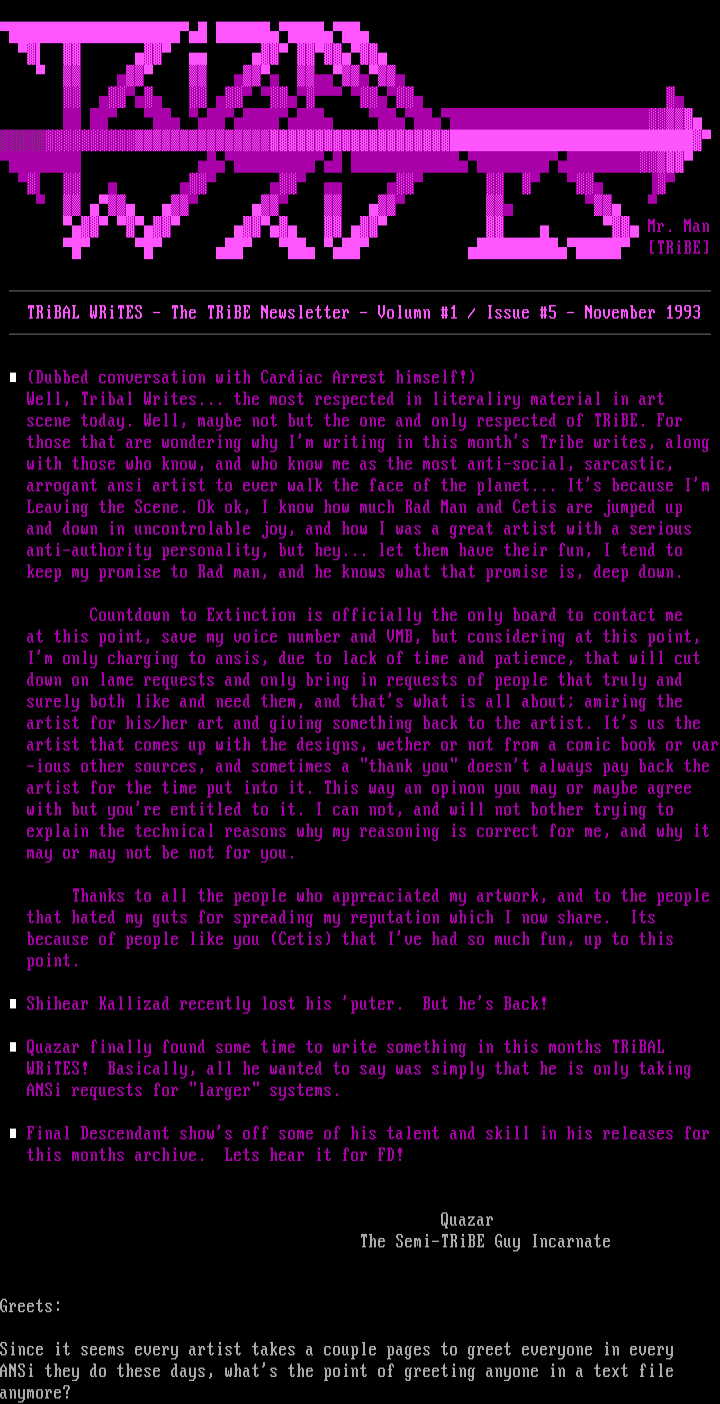 TRiBE Newsletter - Volumn 1 / Issue 5 - November 1993