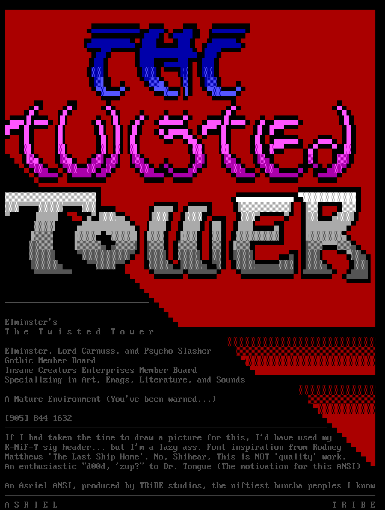 An Asriel ANSI, produced by TRiBE studios, the niftiest buncha peopl