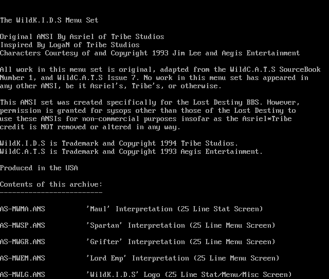 This ANSI set was created specifically for the Lost Destiny BBS. However,