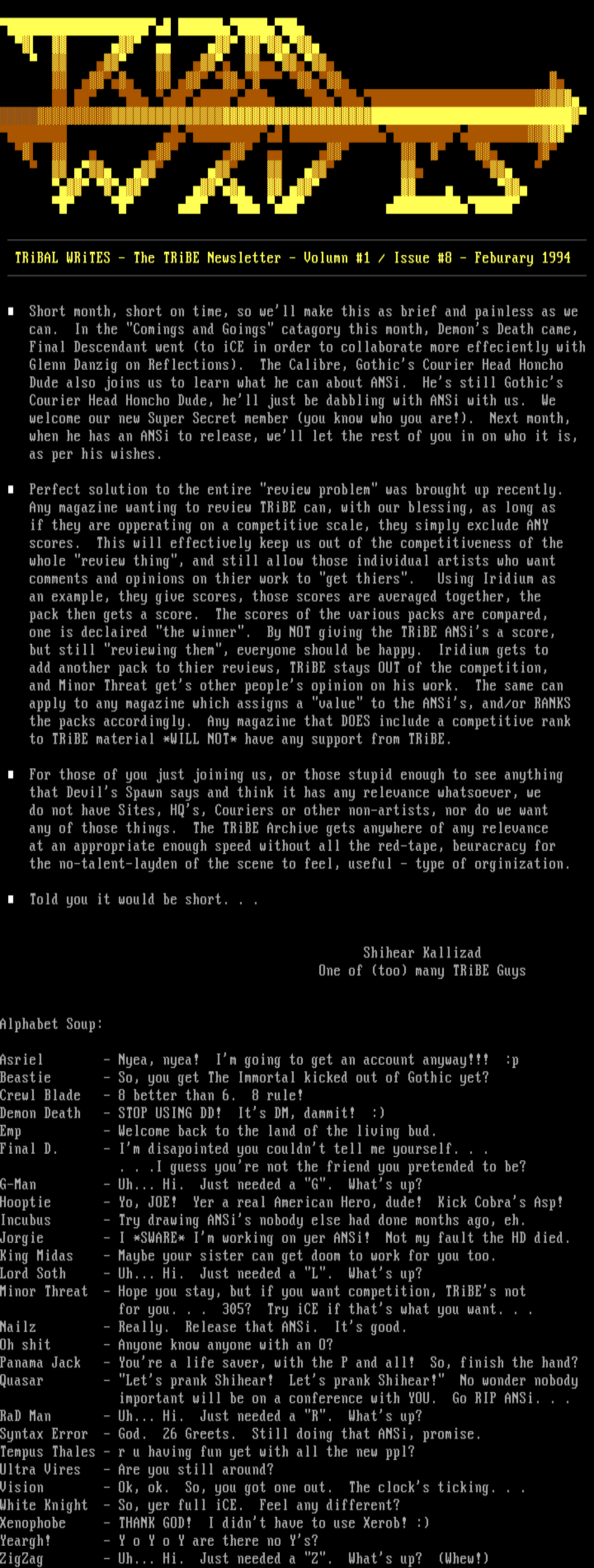 Syntax Error - God. 26 Greets. Still doing that ANSi, promise.