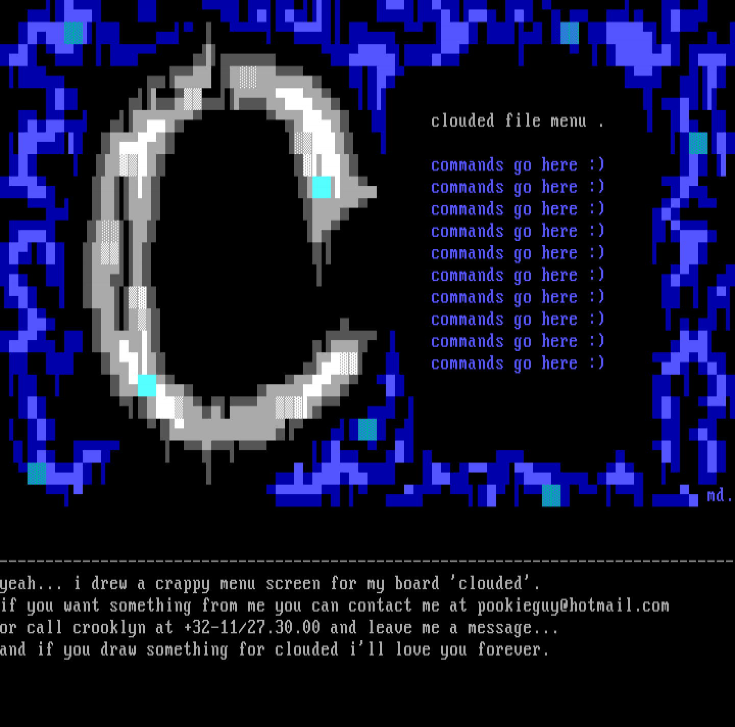 --------------------------------------------------------------------------------yeah... i drew a crappy menu screen for my board clouded.