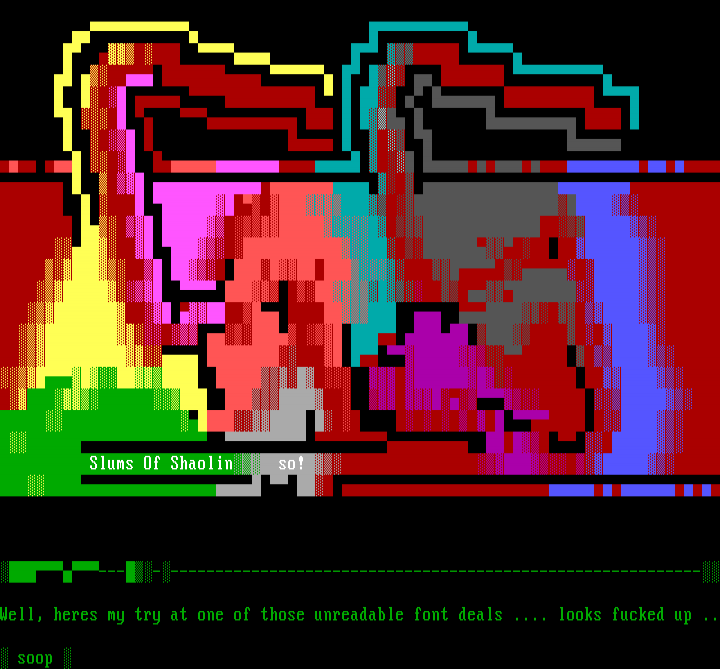 Well, heres my try at one of those unreadable font deals .... looks fucked up ..