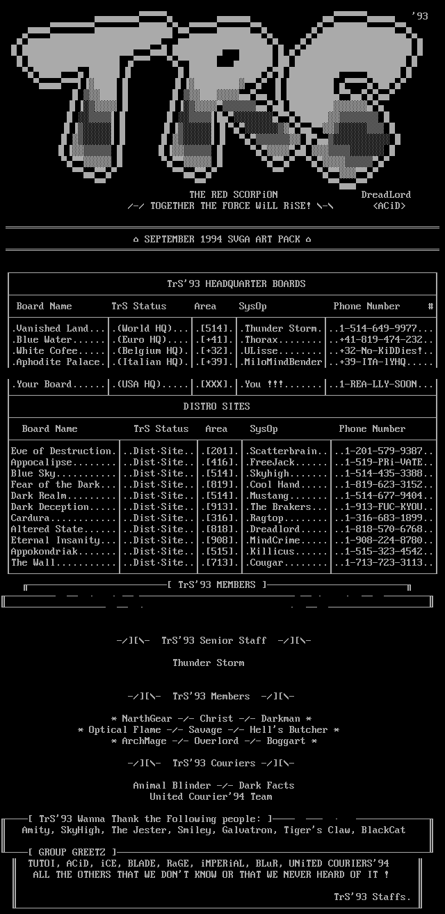 TUTOI, ACiD, iCE, BLADE, RaGE, iMPERiAL, BLuR, UNiTED COURIERS94