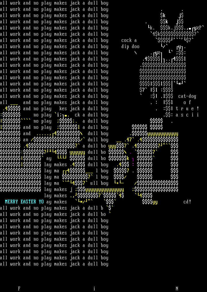: no play i. ck a dull boy .: a s c i i