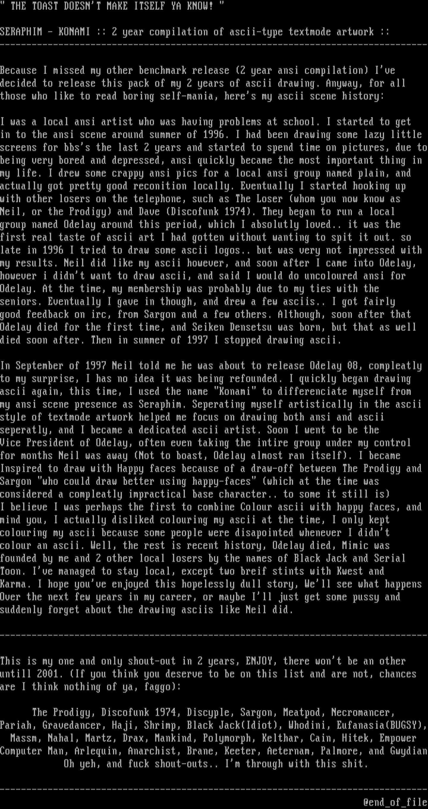 SERAPHIM - KONAMI :: 2 year compilation of ascii-type textmode artwork ::