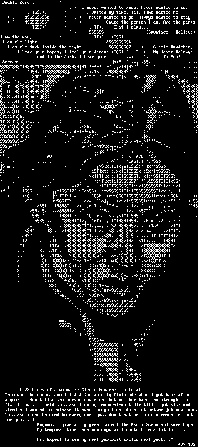 Anyway, I give a big greet to All The Ascii Scene and sure hope