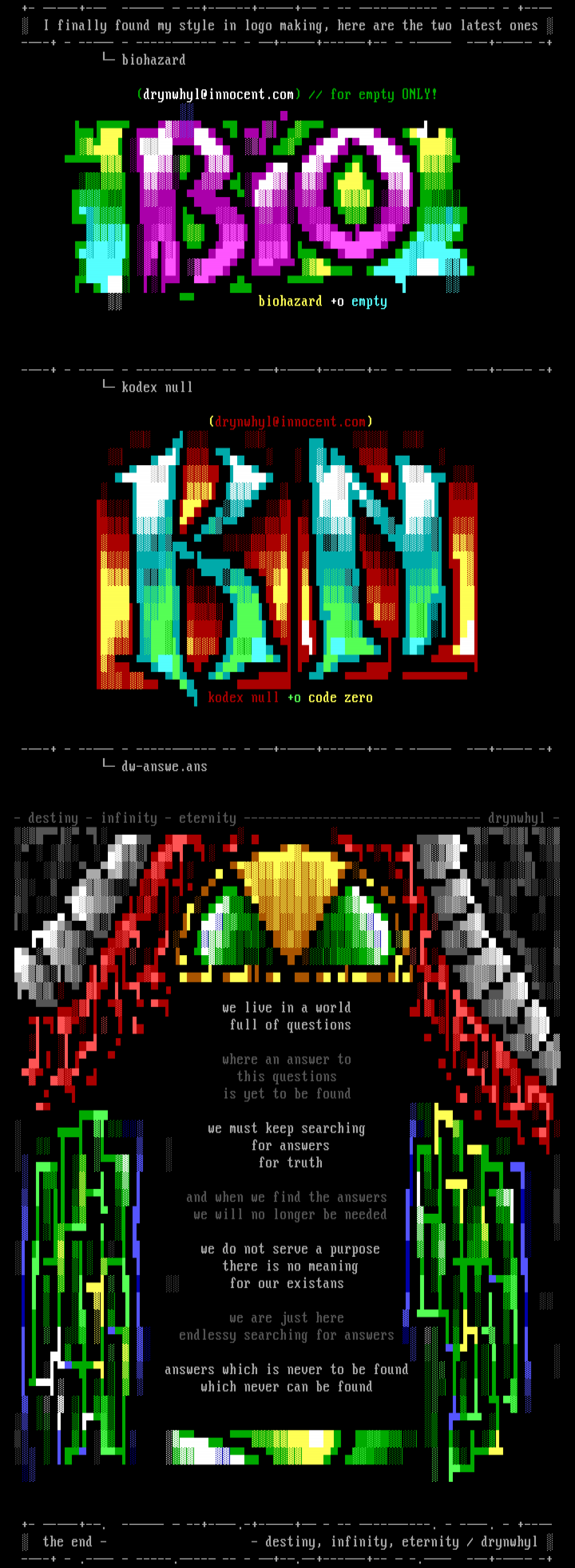 +- --+-. -- --+--.-+--+ - -- -------. - --. - +--- the end - - destiny, infinity, eternity / drynwhyl