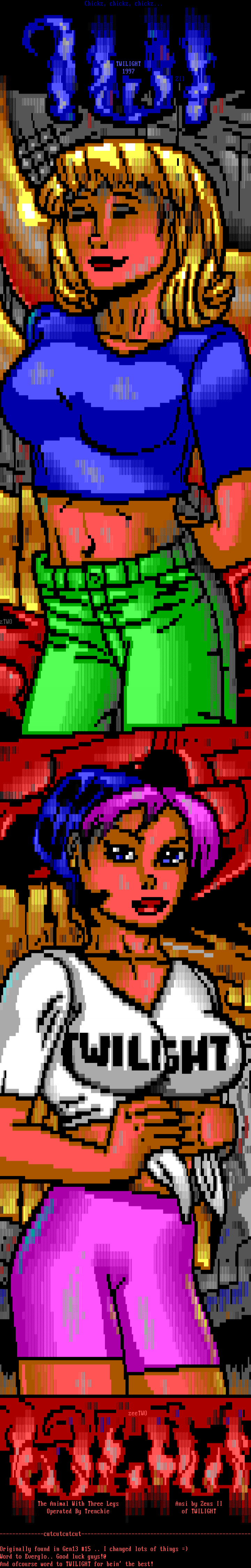 The Animal With Three Legs Ansi by Zeus II Operated By Trenchie of TWILIGHT