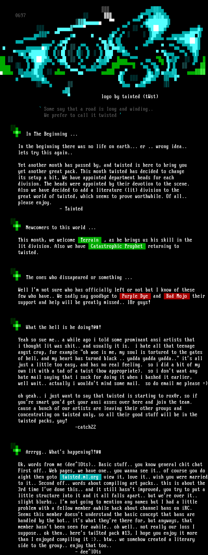 aight then goto twisted.ml.org view it, love it.. wish you were married to it.. Second off.. words about compiling art packs.. this is about the
