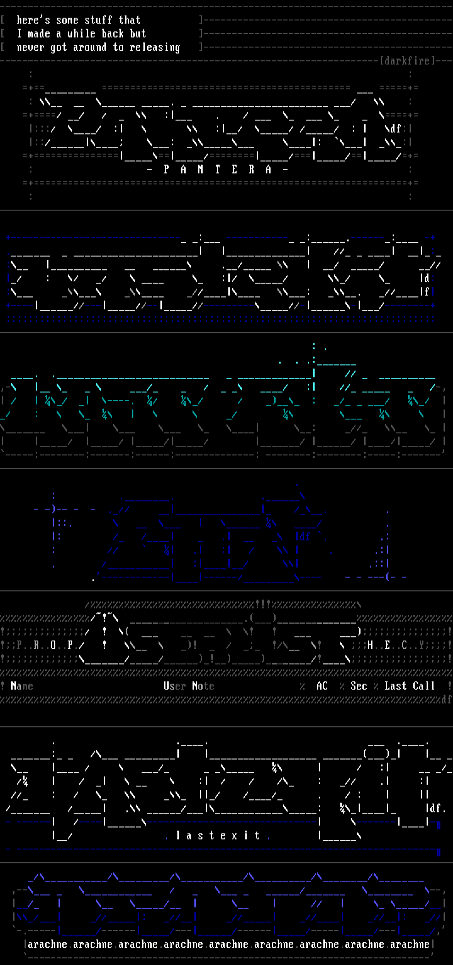 -------------------------------------------------------------------------------- heres some stuff that -------------------------------------------- I made a while back but -------------------------------------------- never got around to releasing ---------------------------------------------------------------------------------------------------------------darkfire--- : :