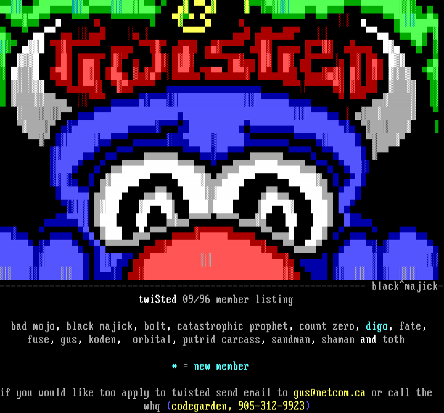 ------------------------------------------------------------------ blackmajick- twiSted 09/96 member listing