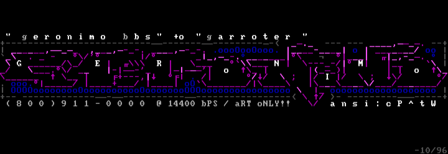 OOOOooooooooOooooooooooOoooooooOOOoooooooooooooooo ooooooooooooooooooo +-- ------------------------------------------ / - --------------+ 8 0 0 9 1 1 - 0 0 0 0 @ 14400 bPS / aRT oNLY!! / a n s i : c P t W