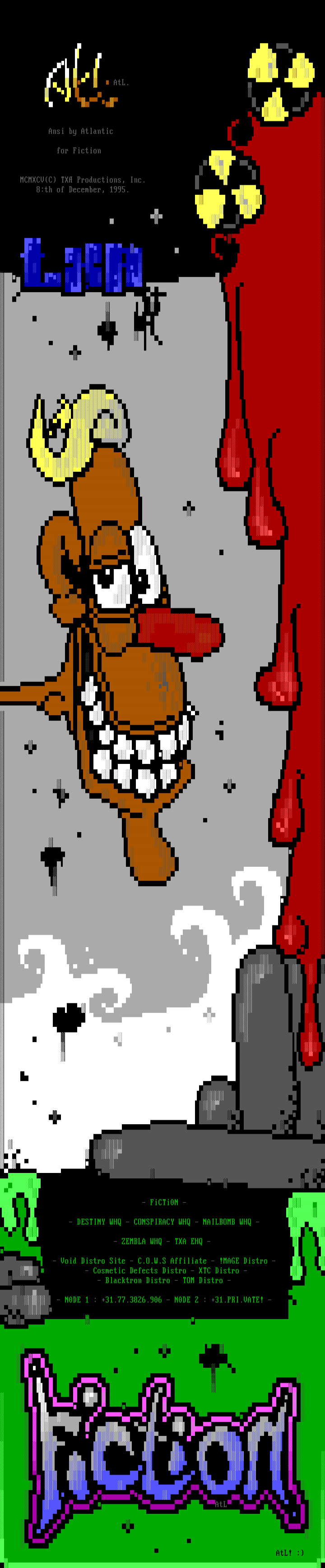 Ansi by Atlantic for Fiction MCMXCVC TX Productions, Inc. 8:th of December, 1995. - FiCTi0N - - DESTINY WHQ - CONSPIRACY WHQ - NAILBOMB WHQ -