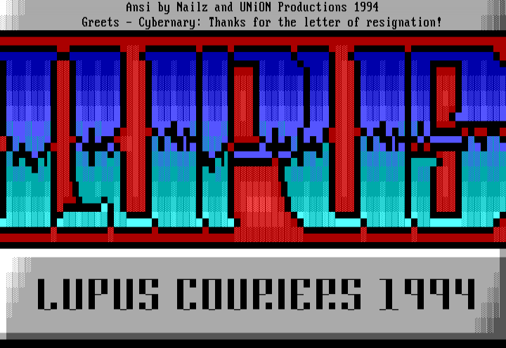 Ansi by Nailz and UNiON Productions 1994 Greets - Cybernary: Thanks for the letter of resignation!