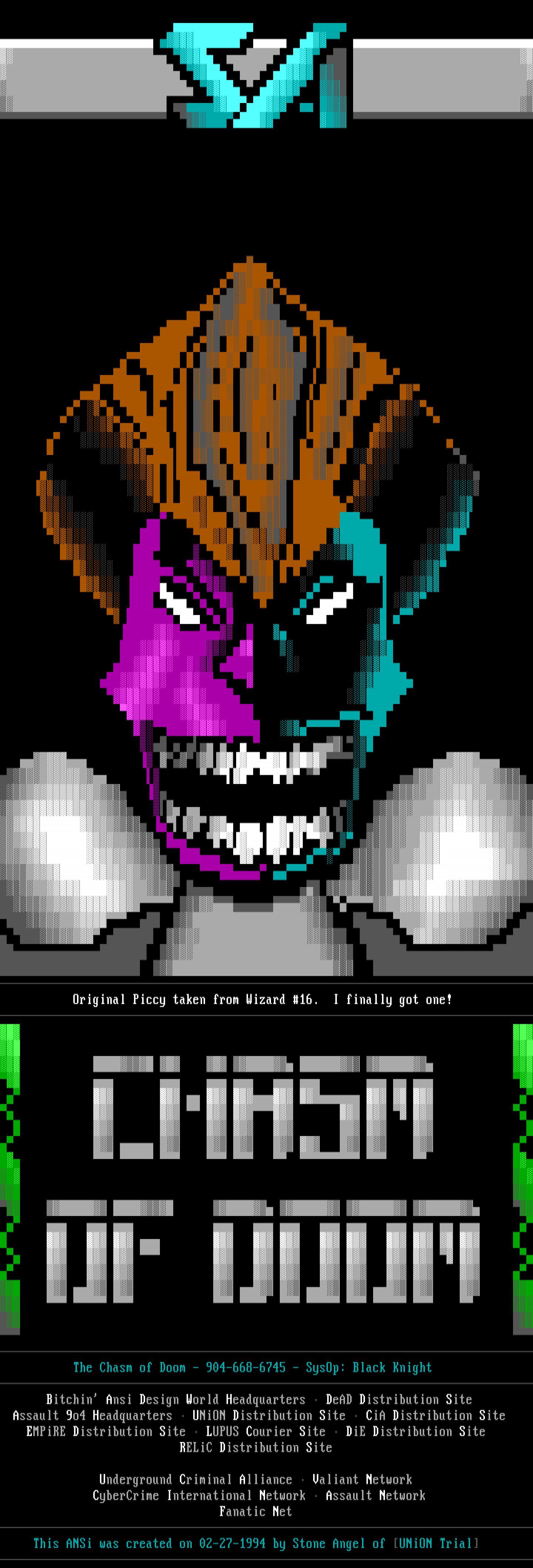 The Chasm of Doom - 904-668-6745 - SysOp: Black Knight