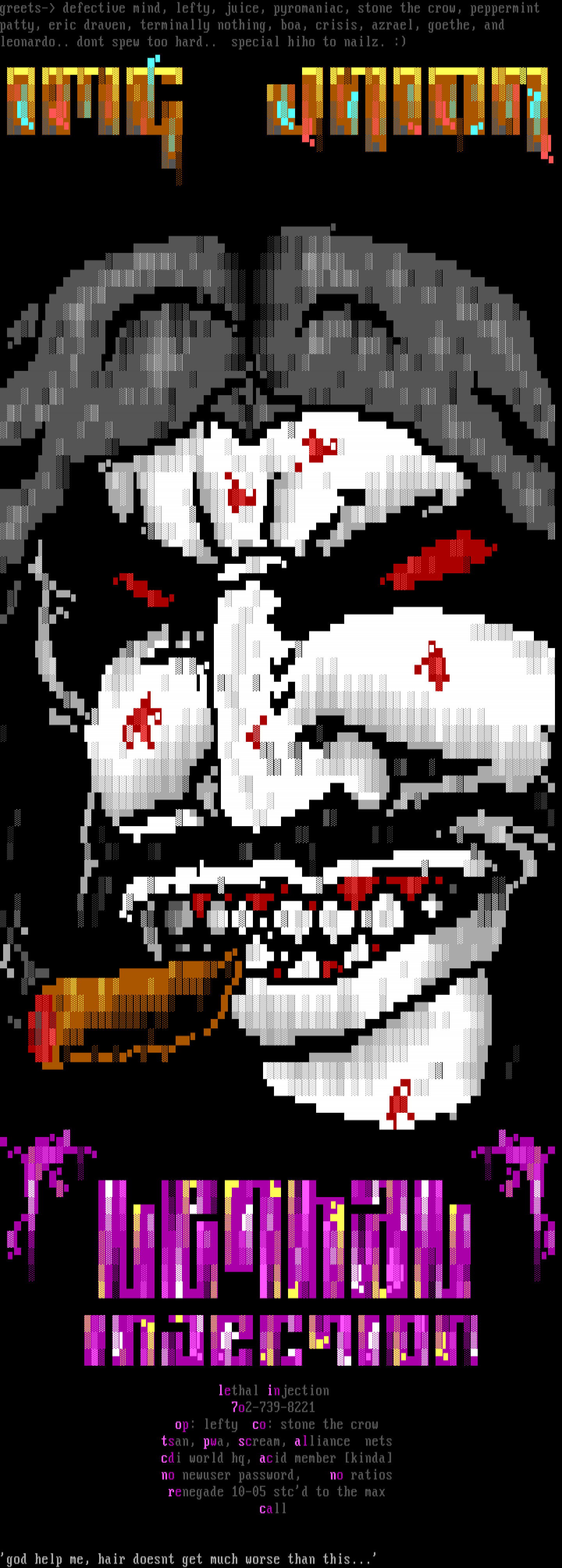 greets- defective mind, lefty, juice, pyromaniac, stone the crow, peppermint