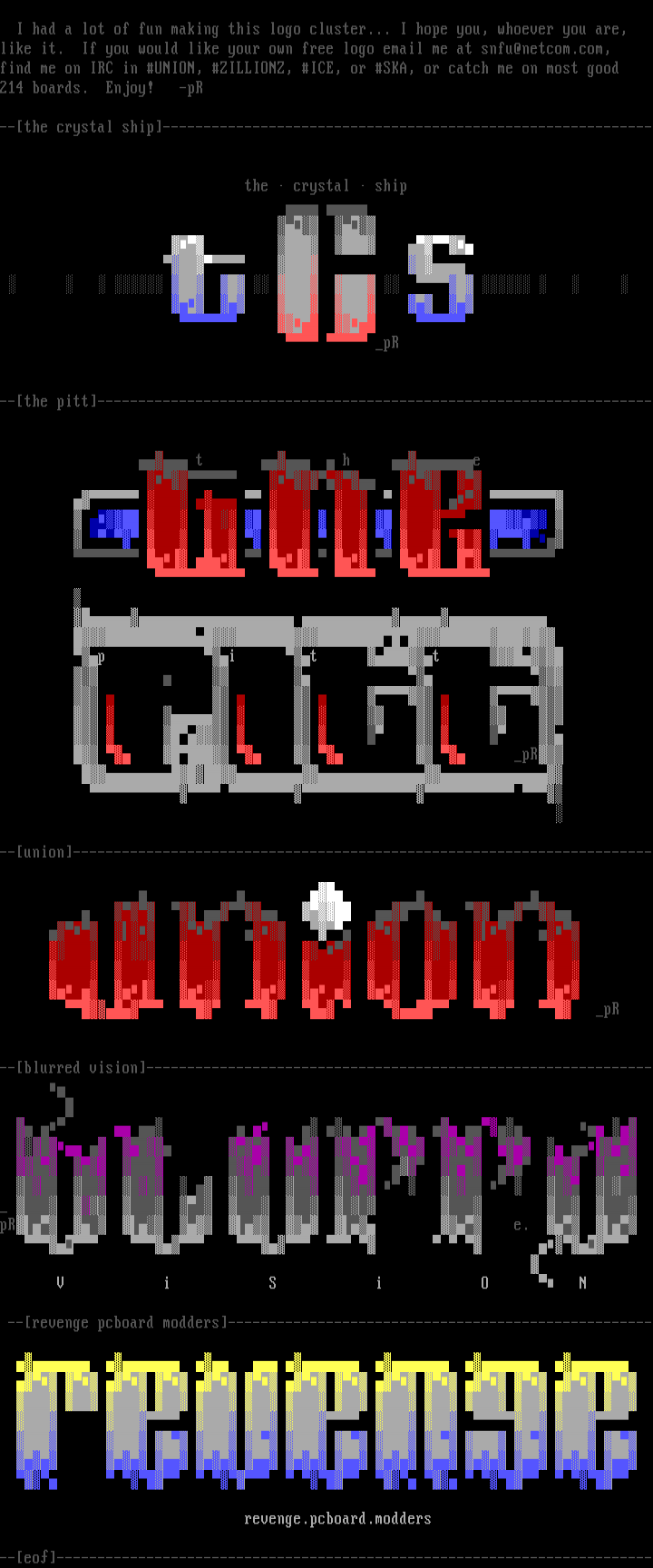 find me on IRC in UNION, ZILLIONZ, ICE, or SKA, o