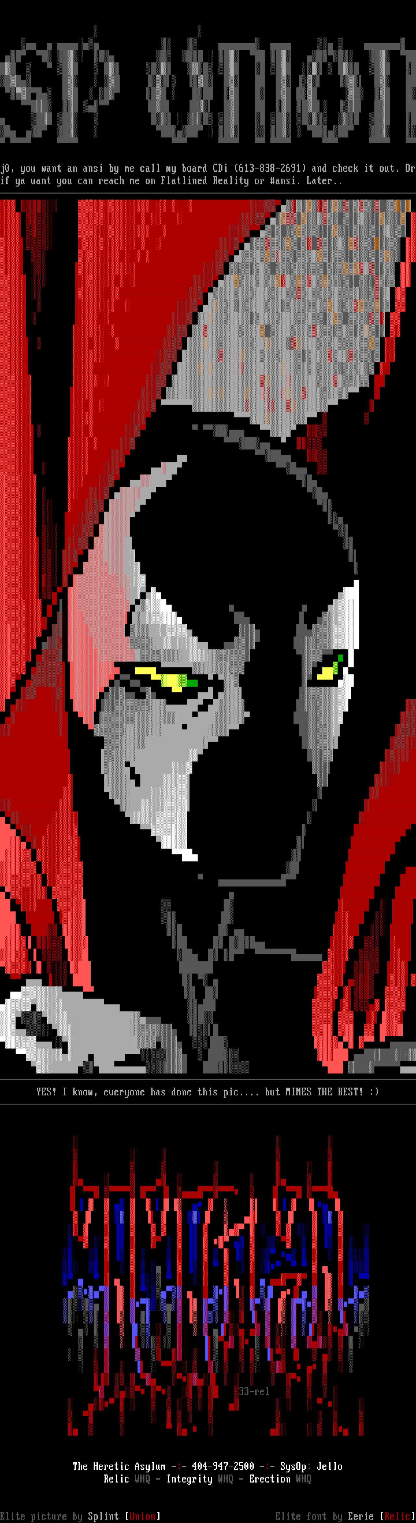 j0, you want an ansi by me call my board CDi 613-838-2691 and check it out. Orif ya want you can reach me on Flatlined Reality or ansi. Later..