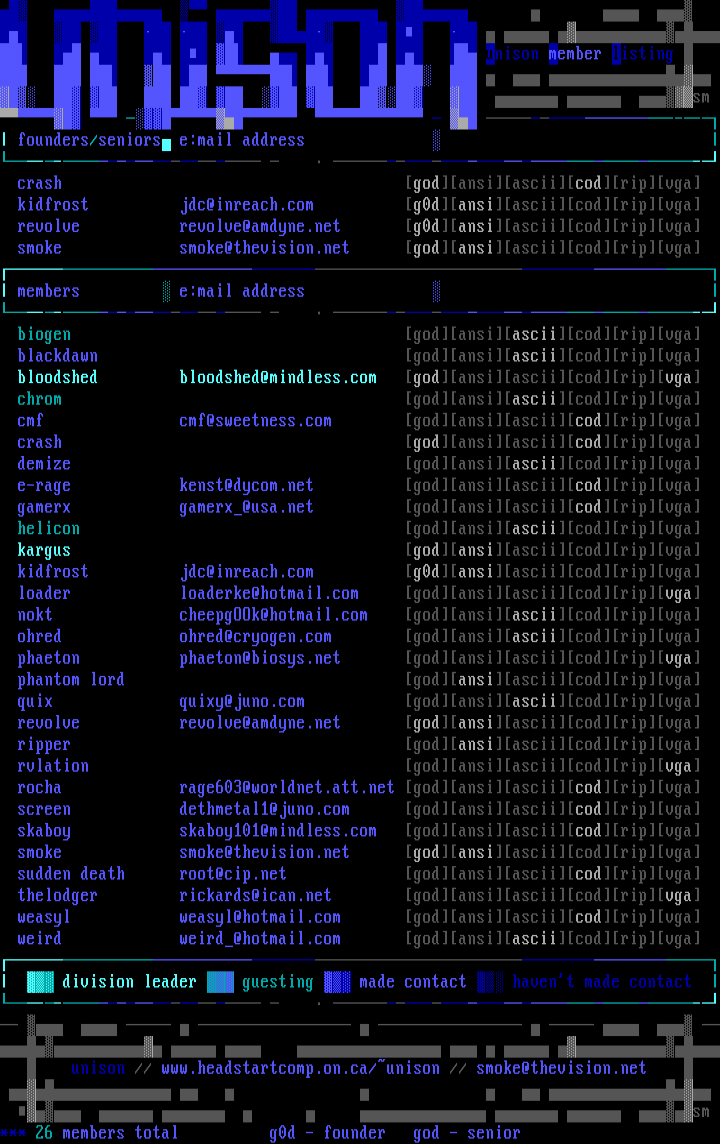 --- founders/seniors e:mail address -- - crash godansiasciicodripvga