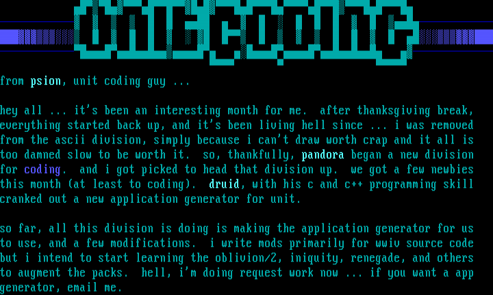 from psion, unit coding guy ... who finally got to be in charge of something