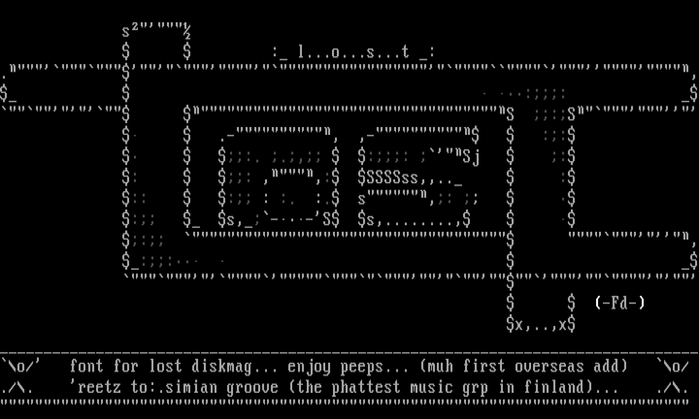 o/ font for lost diskmag... enjoy peeps... muh first overseas add o/