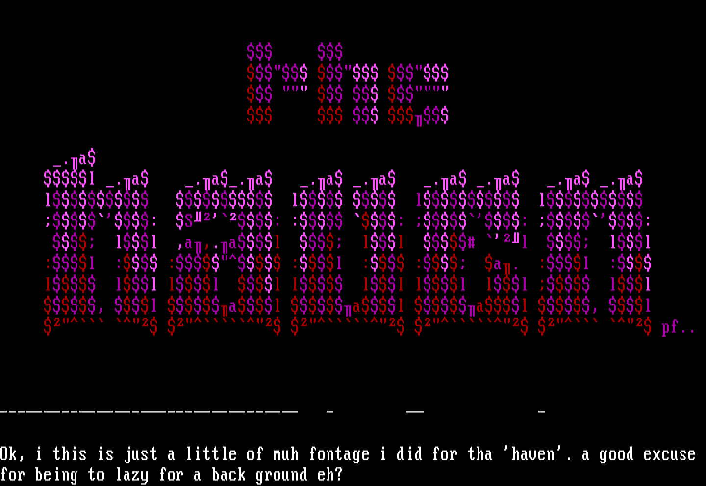 Ok, i this is just a little of muh fontage i did for tha haven. a good excuse