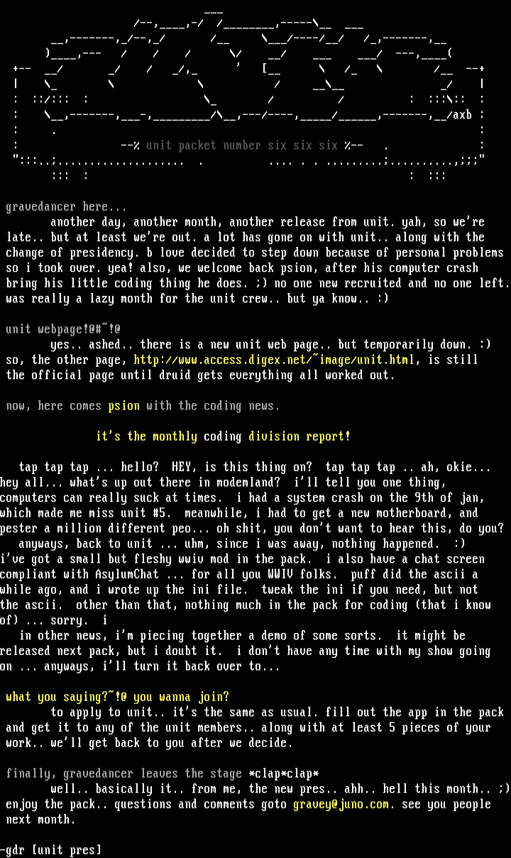 well.. basically it.. from me, the new pres.. ahh.. hell this month.. enjoy the pack.. questions and comments goto gravey@juno.com. see you people