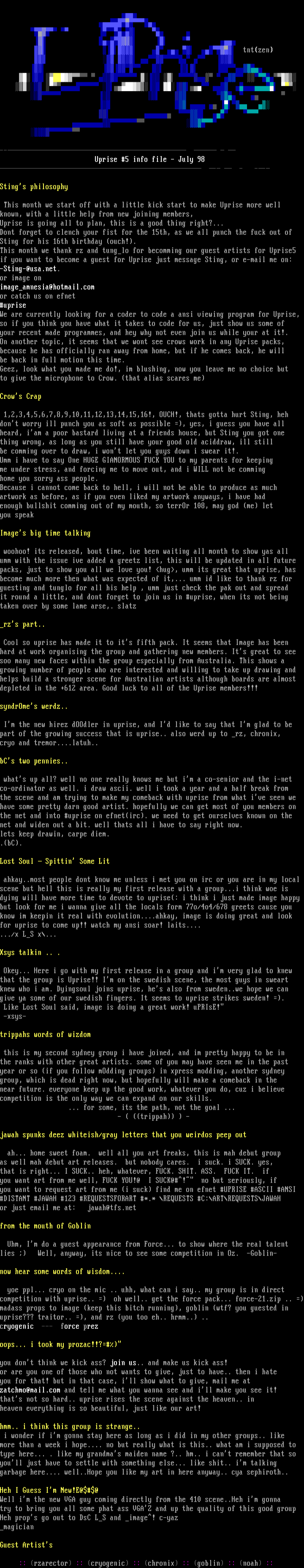 you want to request art from me i suck find me on efnet UPRISE ASCII ANSI