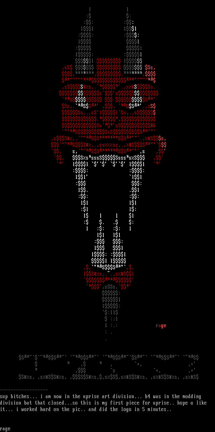 sup bitches... i am now in the uprise art division... b4 was in the modding