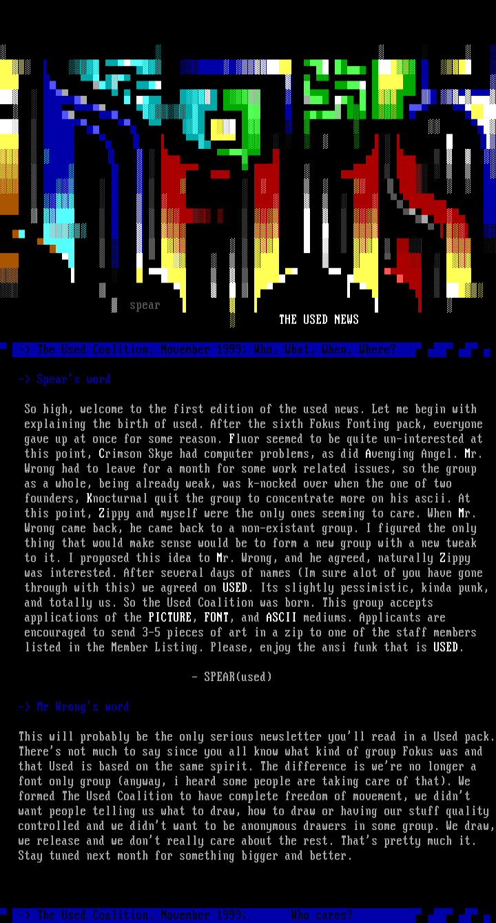 listed in the Member Listing. Please, enjoy the ansi funk that is USED.