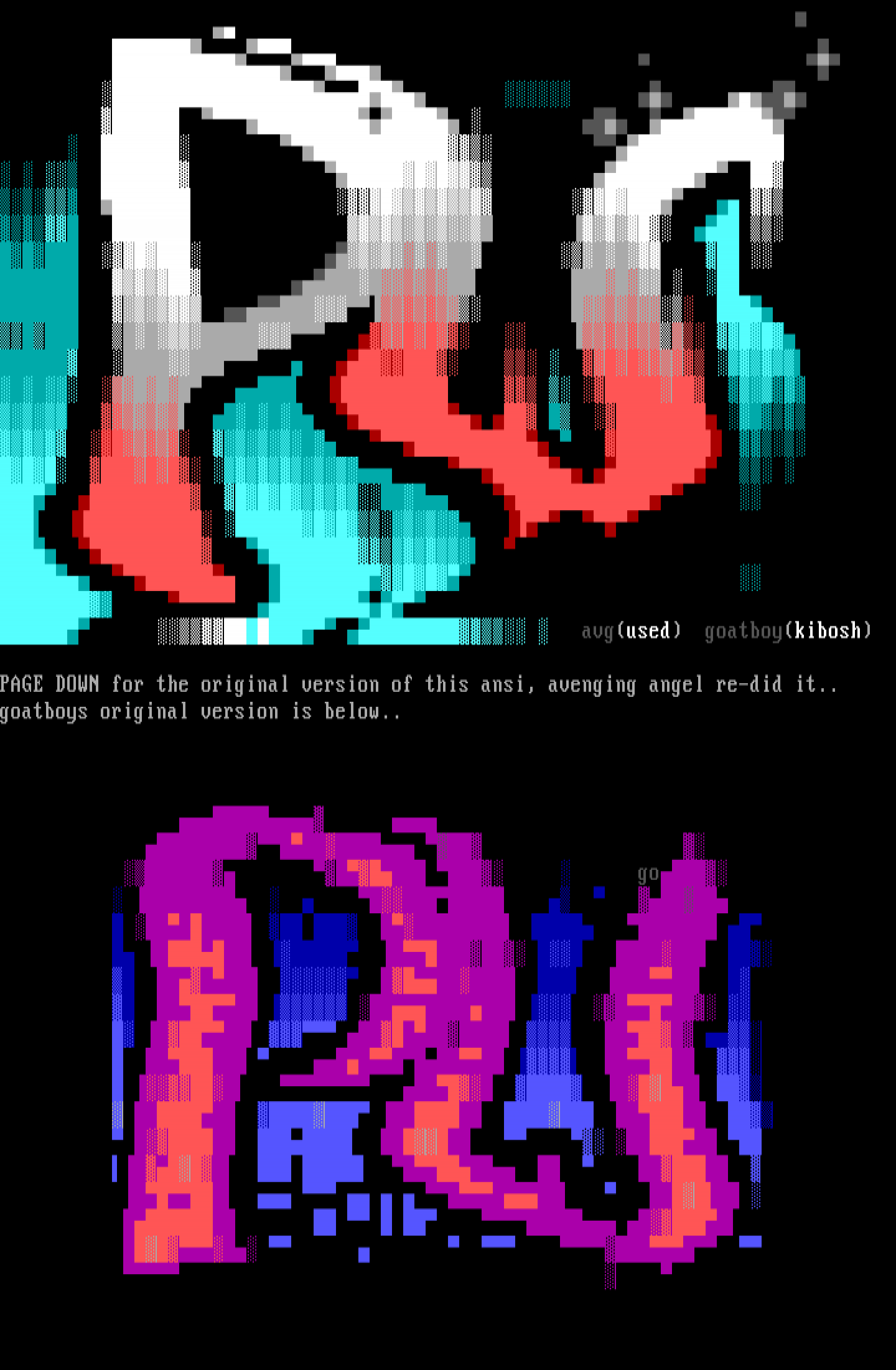 PAGE DOWN for the original version of this ansi, avenging angel re-did it..