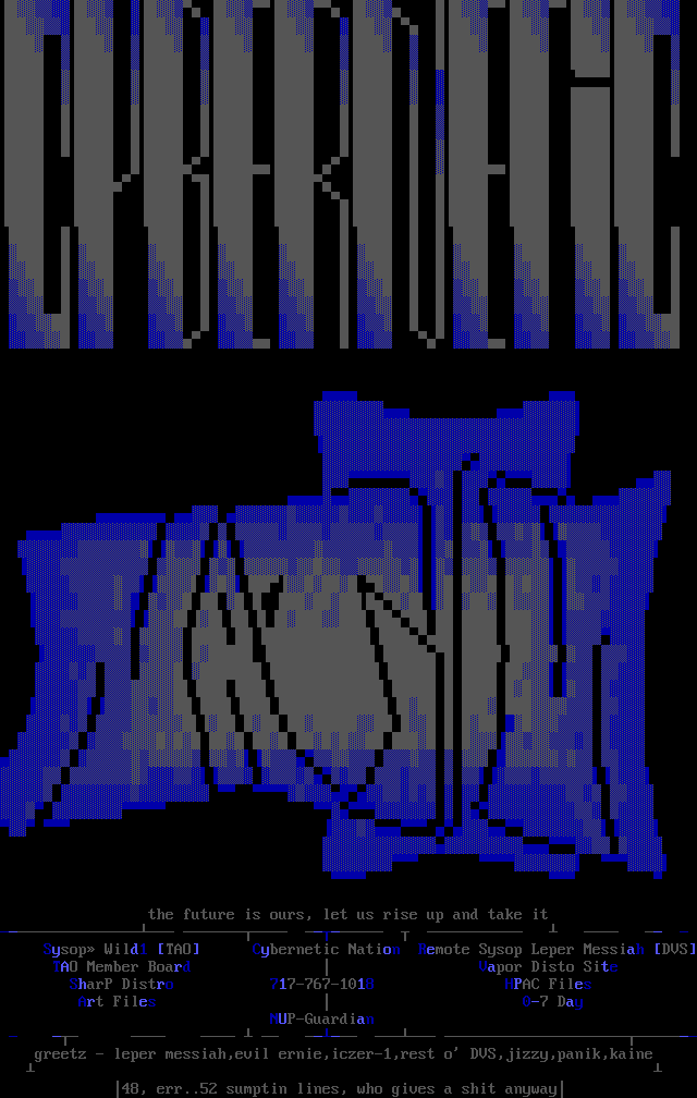 Sysop Wild1 TAO Cybernetic Nation Remote Sysop Leper Messiah DVS TAO Member Board Vapor Disto Site