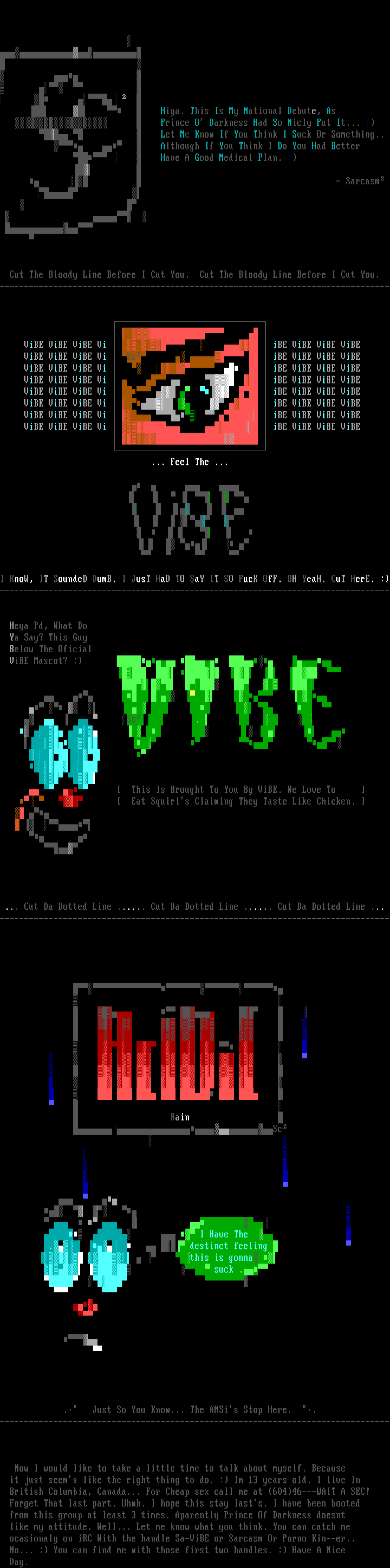 ocasionaly on iRC With the handle Sa-ViBE or Sarcasm Or Porno Kin--er..