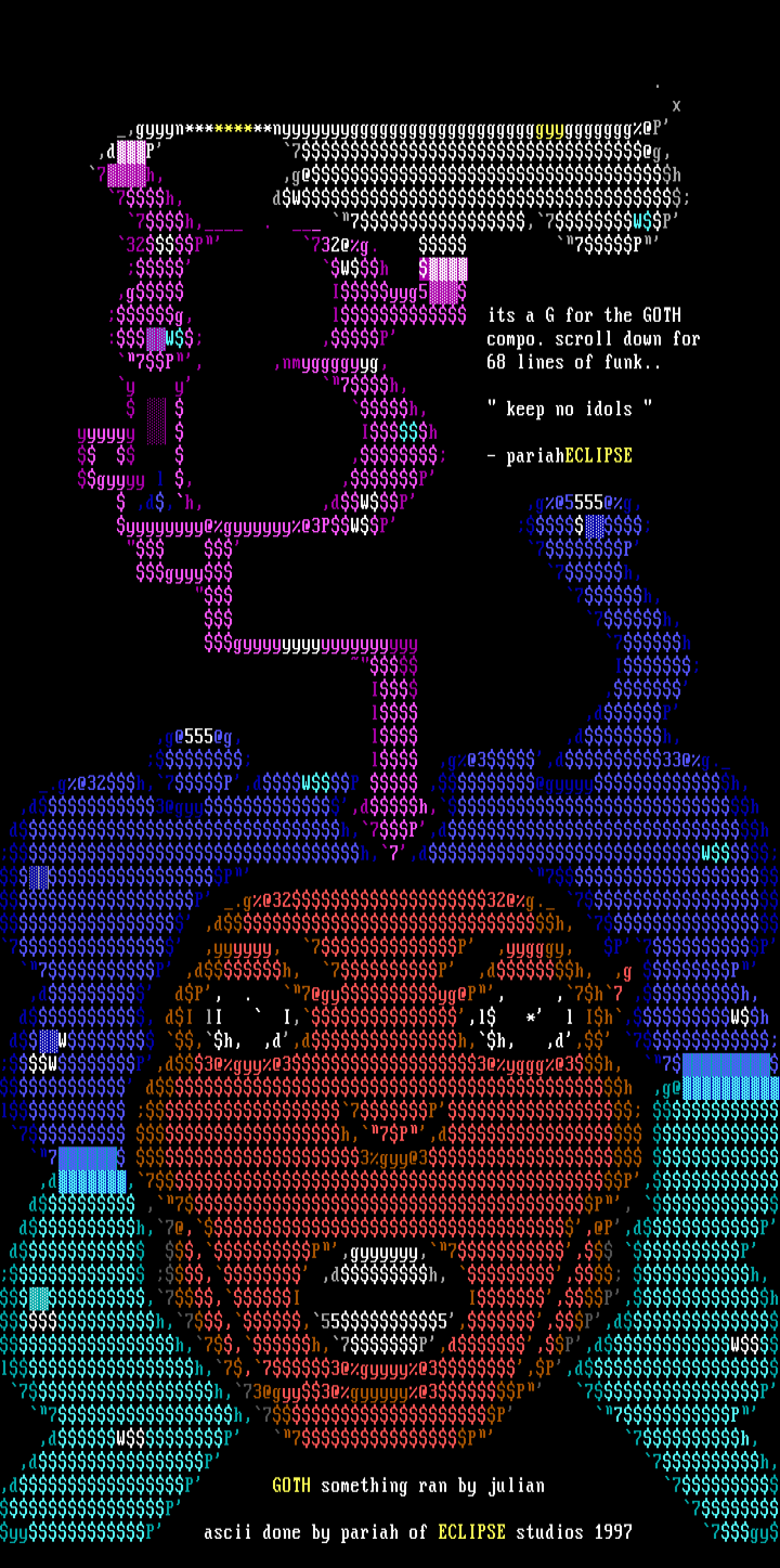 ,dWP 7P 7h, ,dP 7h,,dP GOTH something ran by julian 7P 7yyP ascii done by pariah of ECLIPSE studios 1997 7gy