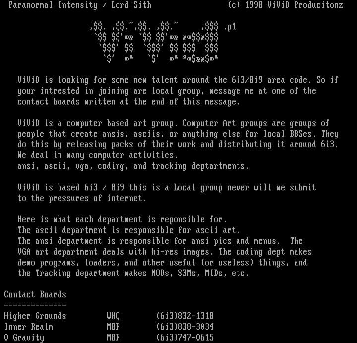 Paranormal Intensity / Lord Sith c 1998 ViViD Producitonz