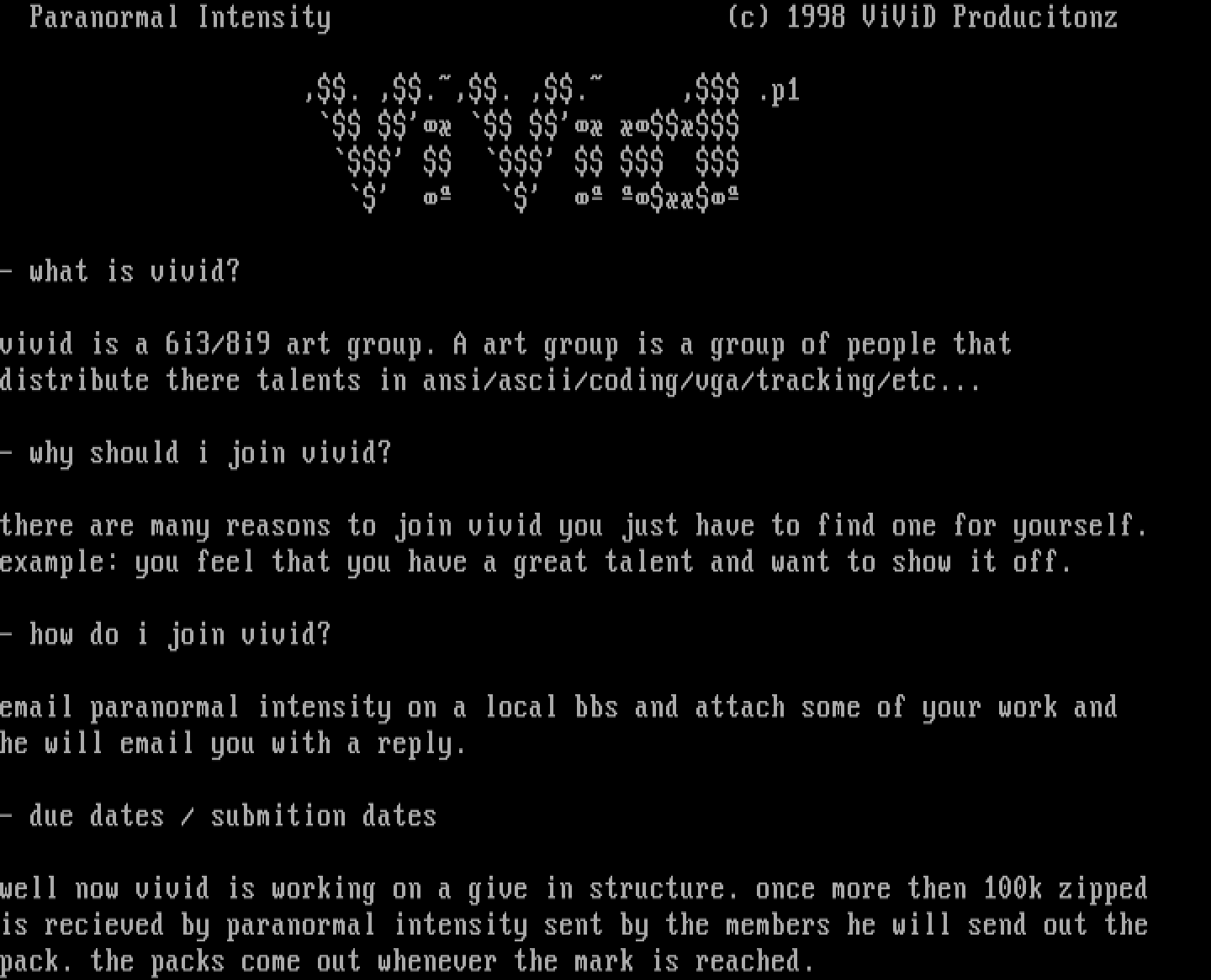 distribute there talents in ansi/ascii/coding/vga/tracking/etc...
