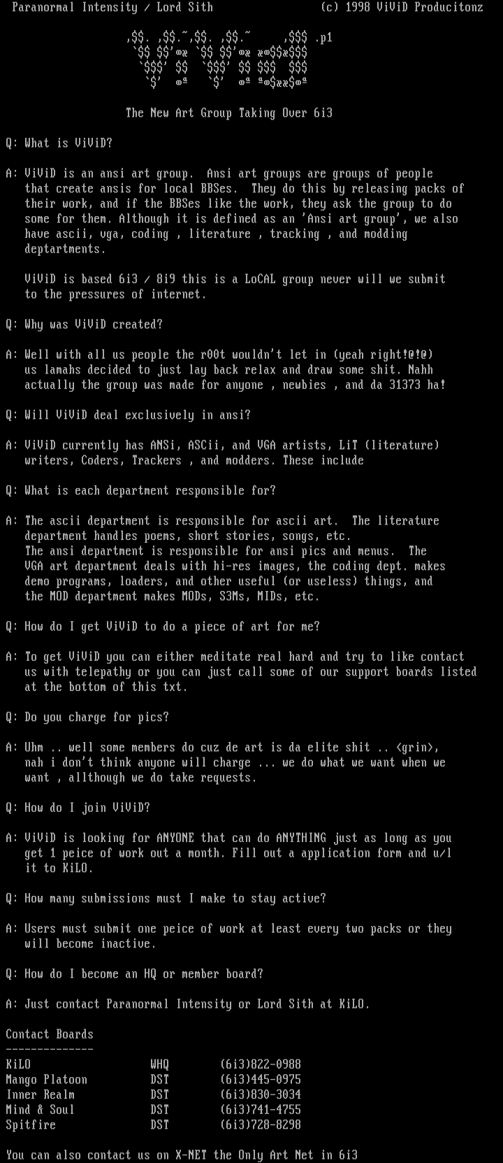 A: ViViD is an ansi art group. Ansi art groups are groups of people