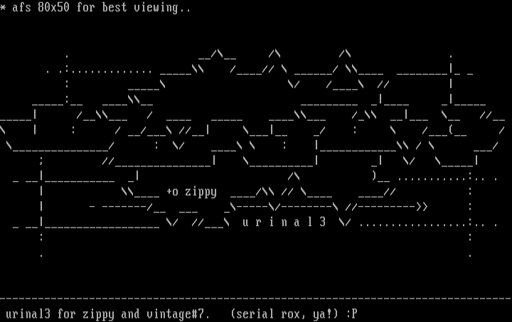 -------------------------------------------------------------------------------- urinal3 for zippy and vintage7. serial rox, ya! :P