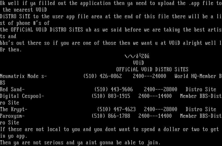 bbss out there so if you are one of those then we want u at VOiD alright well l8r then.