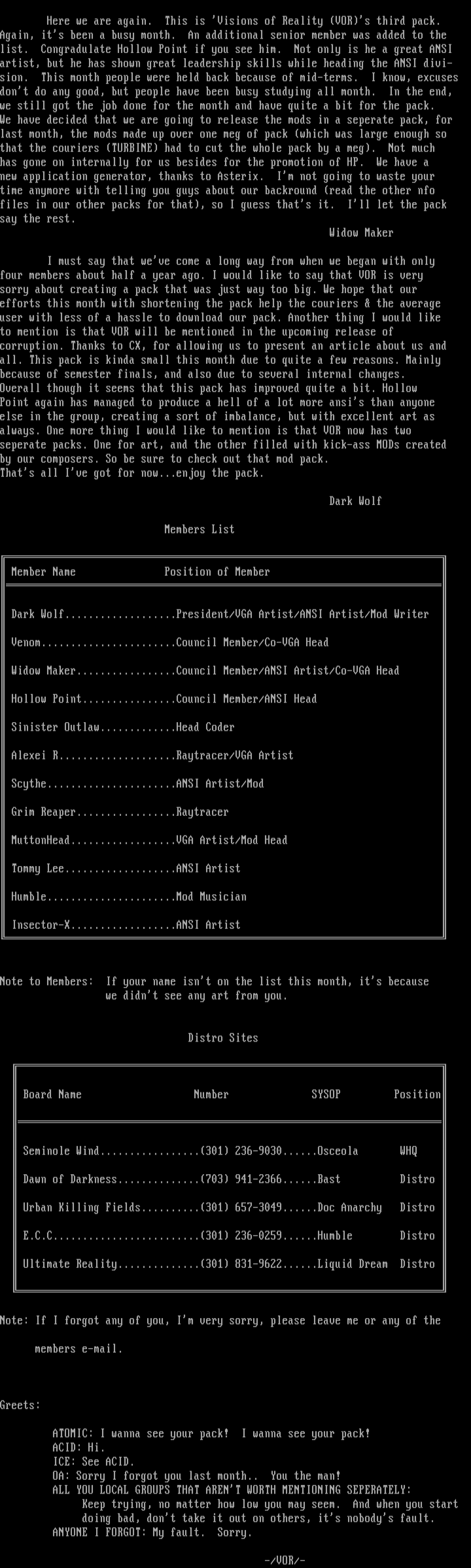 Dark Wolf...................President/VGA Artist/ANSI Artist/Mod Writer