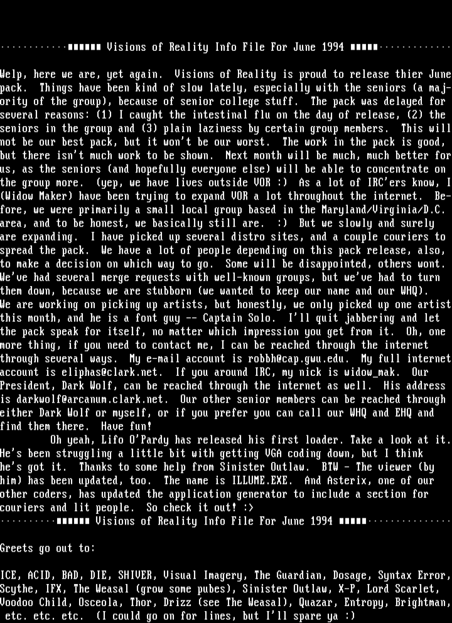 Visions of Reality Info File For June 1994