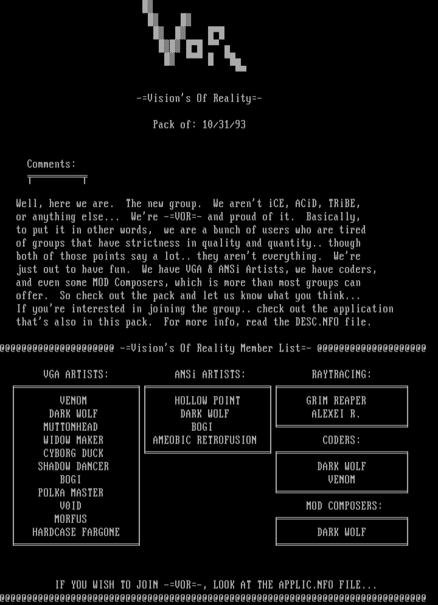 IF YOU WISH TO JOIN -VOR-, LOOK AT THE APPLIC.NFO FILE...