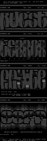 ack (1) alakazam (1) axb (1) compumang (1) count drakula (1) drax (8) dshay (1) fonzie (3) gravedancer (3) kresile (3) mankind (4) mart (1) phunk (2) quest (5) rad (1) sargon (1) speed freak (4) spud (2) tim drake (2) volatile (1) wax ascii (1)