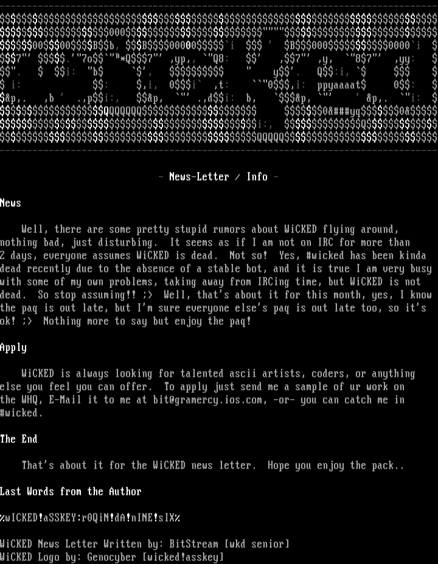 WiCKED is always looking for talented ascii artists, coders, or anything