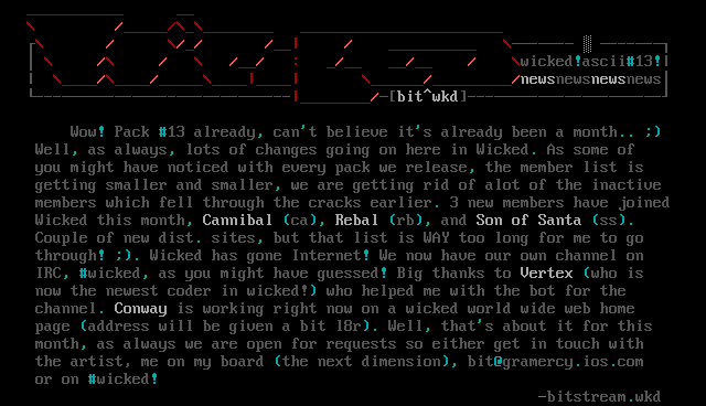 through! . Wicked has gone Internet! We now have our own channel on IRC, wicked, as you might have guessed! Big thanks to Vertex