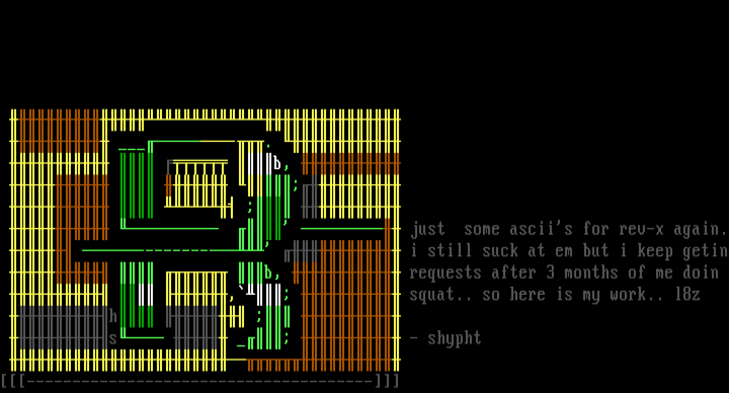 just some asciis for rev-x again. -------- i still suck at em but i keep getin b, requests after 3 months of me doin
