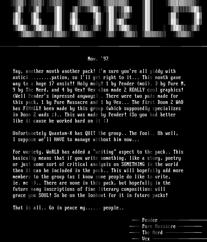 this pack, 1 by Pure Massacre and 1 by Vex... The first Doom 2 WAD