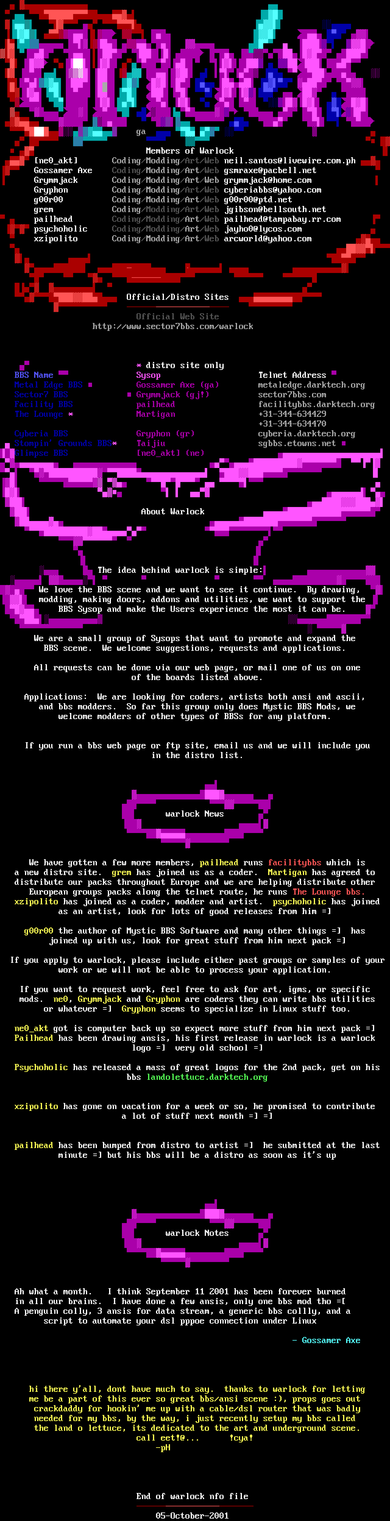 Members of Warlock ne0akt Coding/Modding/Art/Web neil.santos@livewire.com.ph